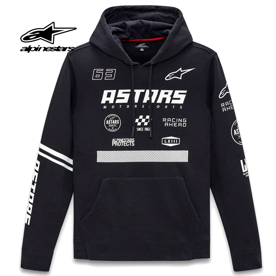 Rib at cuffs and hem, pouch pocket, metal eyelets and contrast dipped draw cord tips
