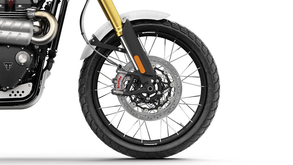 Twin 320mm Brembo discs, Brembo M50 4-piston radial monobloc calipers, ABS |