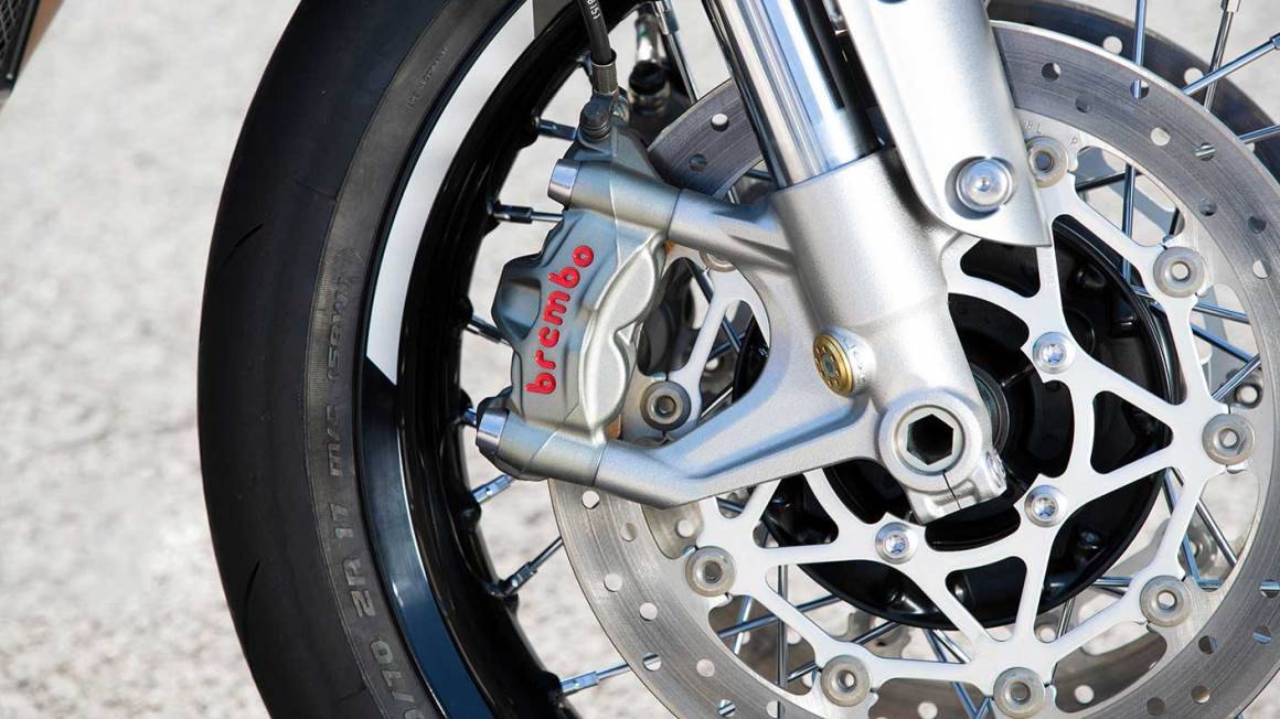 Twin 310 mm Brembo floating discs, Brembo M50 4-piston radial monobloc calipers, ABS |