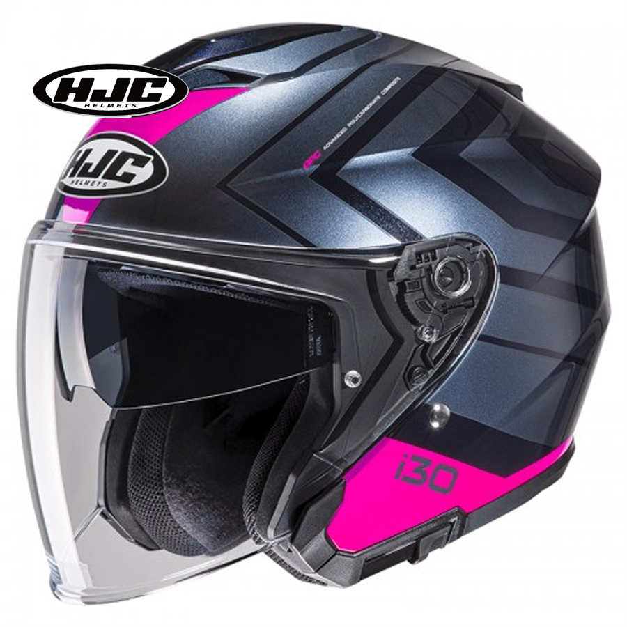 The i30 was created from years of design and research, bringing the best open face helmet to the market. It starts with the next generation face shield. This new Pinlock ready shield offers a wide distortion-free view and now has a reinforced frame around the lower edges to reduce wind turbulence. The shield also uses the tool-less, quick release base plate system for easy to use install/removal. We also updated the internal sun shield with an increased coverage area than our previous model. The 3 top vent intake system provides maximum airflow into the helmet, while the rear exhaust spoiler creates a vacuum effect flushing out the heat. The Multi-Cool top liner and cheek pad interior gives additional cooling features with its moisture-wicking anti-bacterial fabric. The 2 Shell/3 EPS breakdown reduces the weight of the helmet and offers better sizing. The i30 is also Smart HJC ready to accept the 10B or 20B Bluetooth systems (*sold separately). Overall, this new Open Face helmet will be the choice of riders for years to come.