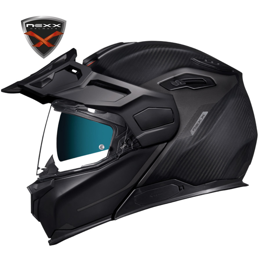 Nexx X.Vilijord Carbon Helmet Zero Pro Carbon Matte Black. Modular adventure helmet, extremely versatile and functional. Made of very light carbon fiber, it has been manufactured to be used on any terrain and in any circumstance. It has an integrated sun visor, X-Mart Dry interior padding, an effective ventilation system and a removable visor. The helmet has P / J approval to ride in complete safety both with the helmet closed in full-face mode and with the helmet open in jet mode.