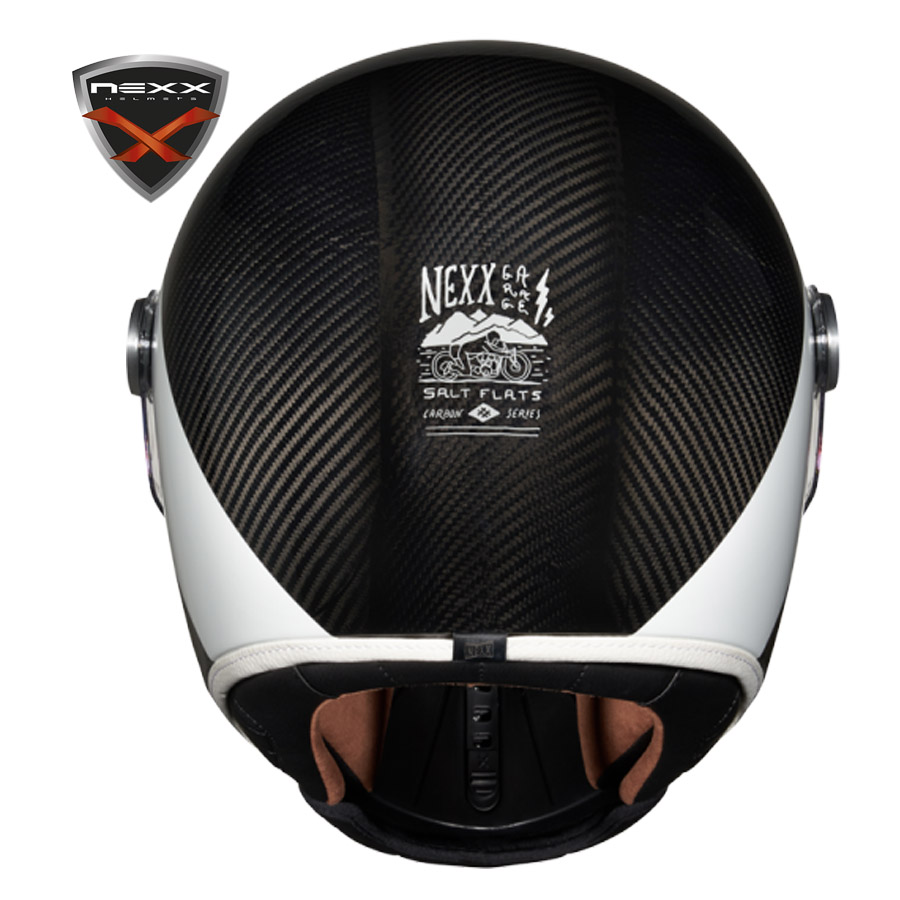 Seventies styling meets modern comfort, materials and construction. The XG100 Racer only looks vintage. Underneath that premium paint lies a carbon composite exterior shell and a plushly lined interior. The shield closes with a firm detent and wears spun aluminum pivot hardware.
